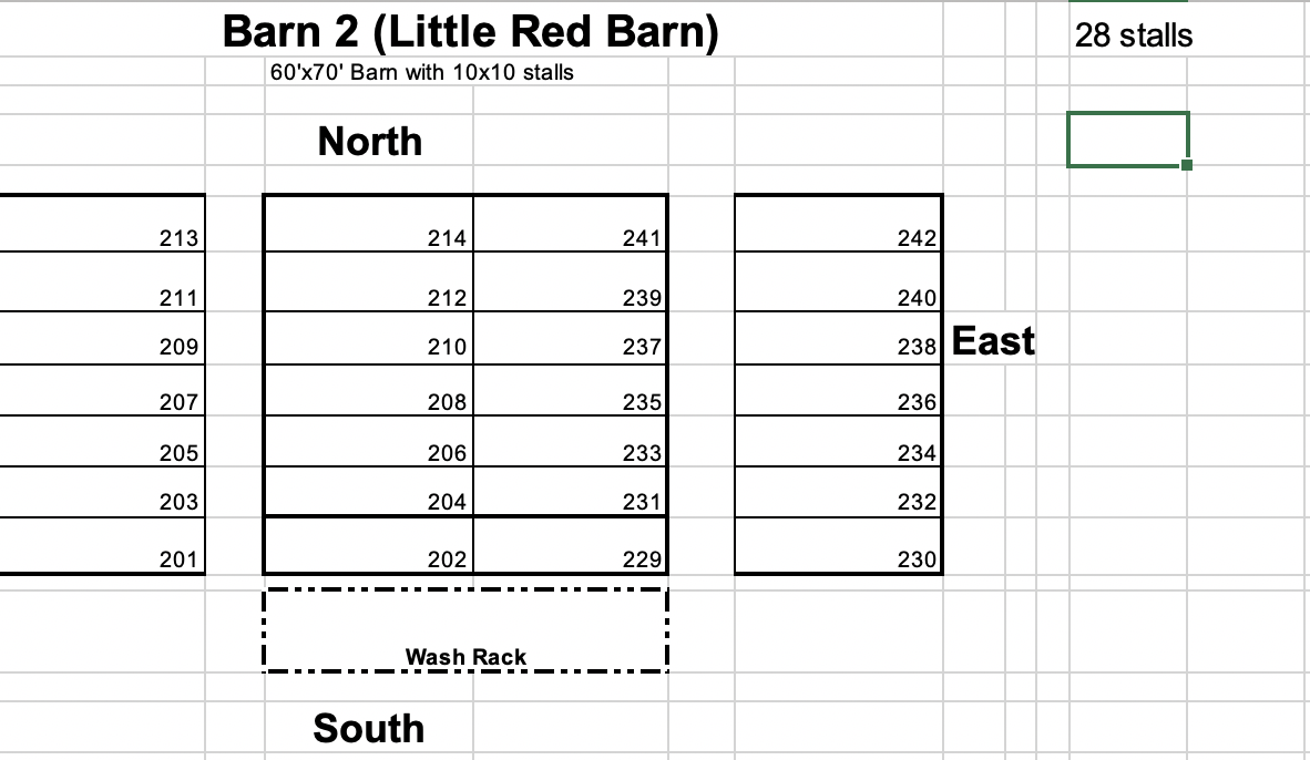 NORTH (LITTLE RED BARN) DIRT STALLS (201-230)
